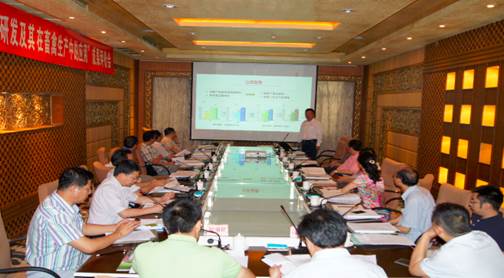 應邀出席評價(jià)會(huì )的主管部門(mén)領(lǐng)導有省農業(yè)廳楊朝波副廳長(cháng)、省農業(yè)廳科教處陳開(kāi)勇處長(cháng)、副處級調研員蔣敏。項目完成單位出席的領(lǐng)導包括:四川省畜科院院長(cháng)蔣小松研究員、副院長(cháng)何志平研究員、副院長(cháng)付茂忠研究員和科技處張金靈處長(cháng)以及四川省畜科公司董事長(cháng)兼總經(jīng)理鄺聲耀研究員。